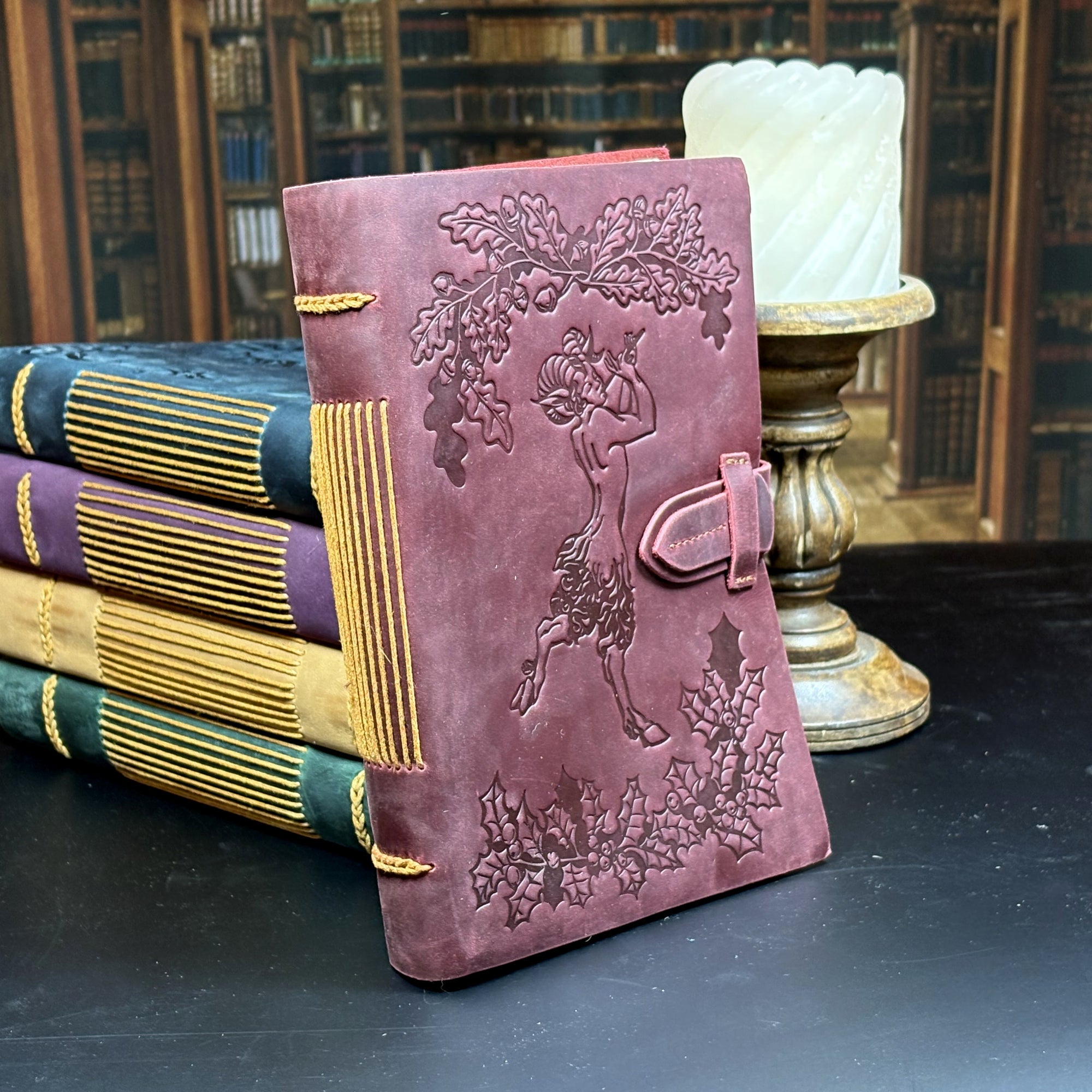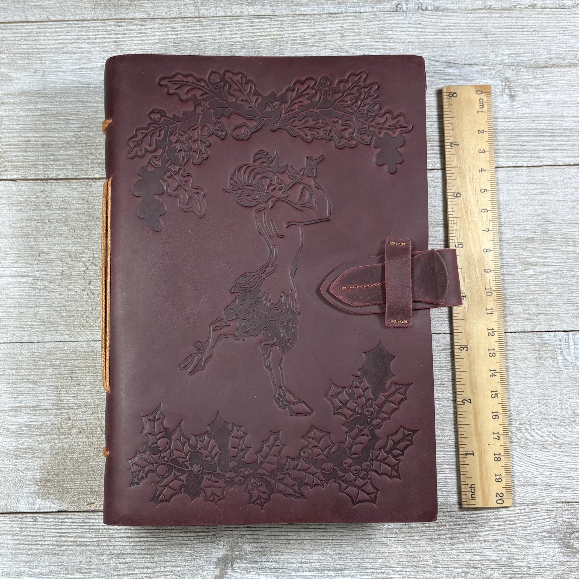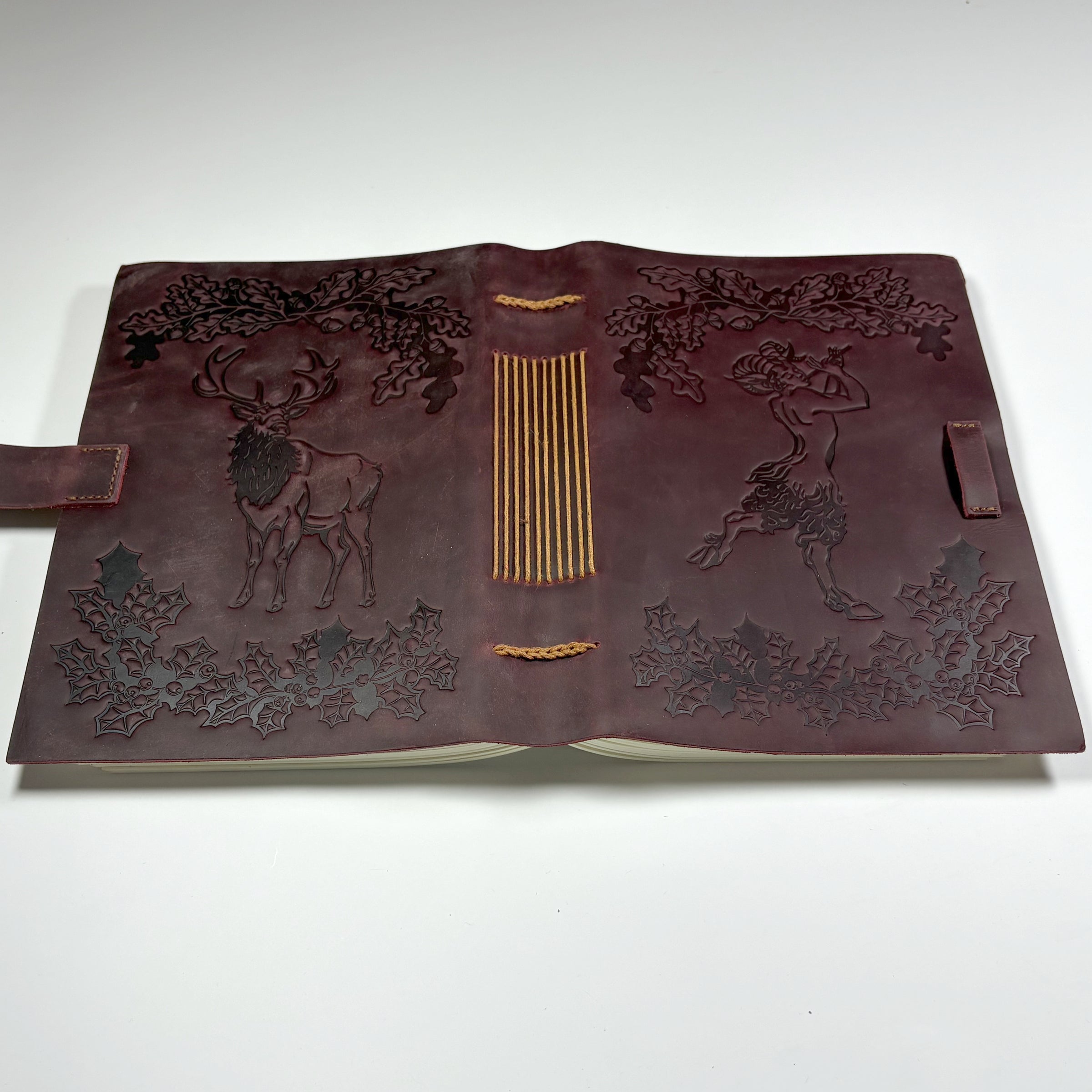 Oak and Holly Leather Journal with Forest Design